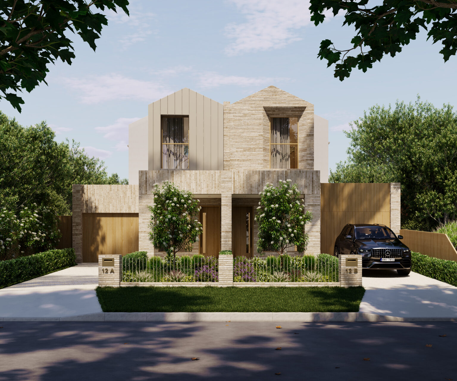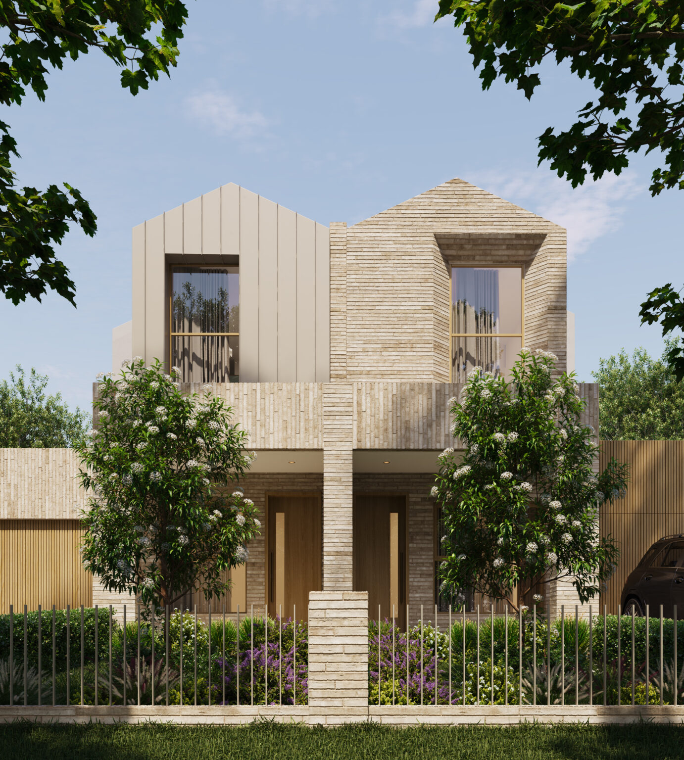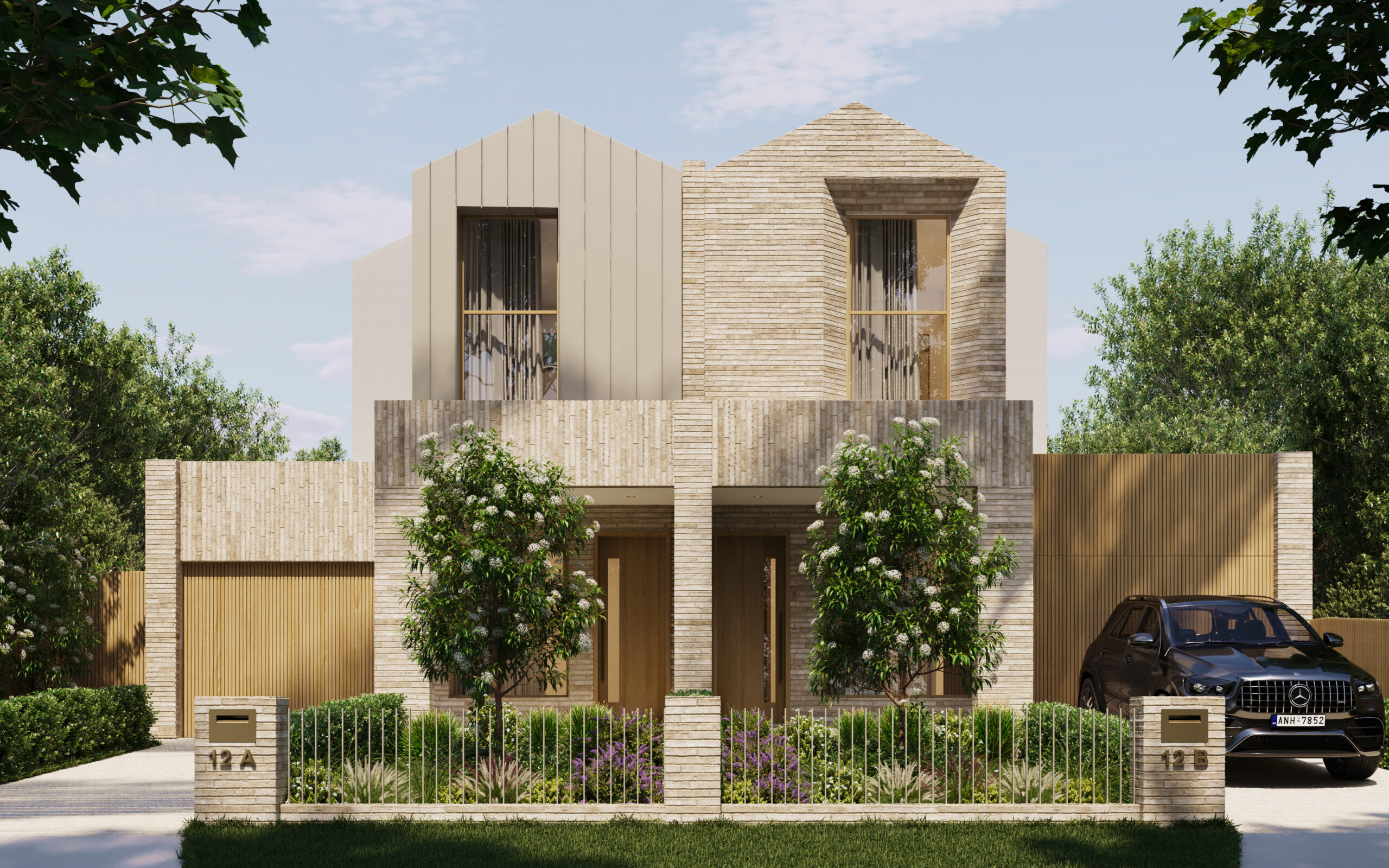Inspired by the coastal character of the Mornington Peninsula, the Dromana Duplex embodies a refined sense of calm through natural textures and a grounded material palette. Earthy clay bricks and warm timber cladding define the exterior, anchoring the homes within their landscape while reflecting the relaxed rhythm of coastal living.